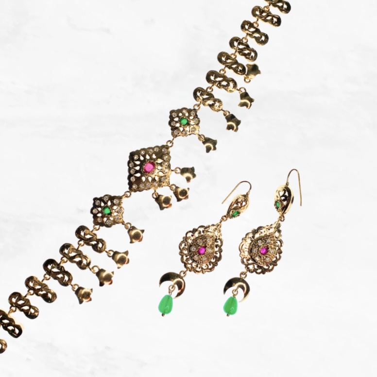 • Couleurs Traditionnelles : Vert et fuchsia, typiques des bijoux marocains